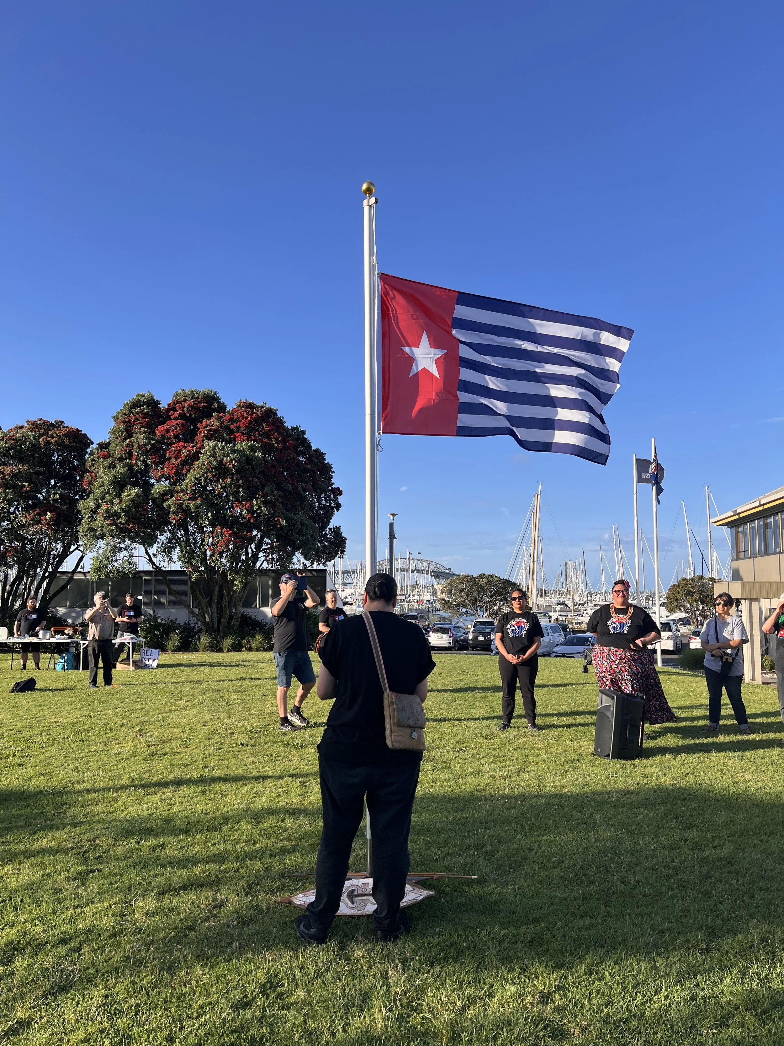 The ceremony began with an opening karakia by Ngāti Whātua Ōrākei, the mana whenua of Central Tāmaki Makaurau. After the session was blessed and acknowledgments made, we raised the Morning Star flag, played the national anthem of West Papua, and observed a moment of silence. Both events, across the two-day period, were a beautiful acknowledgment of West Papua and a necessary reminder that until West Papua is free, none of us truly are.